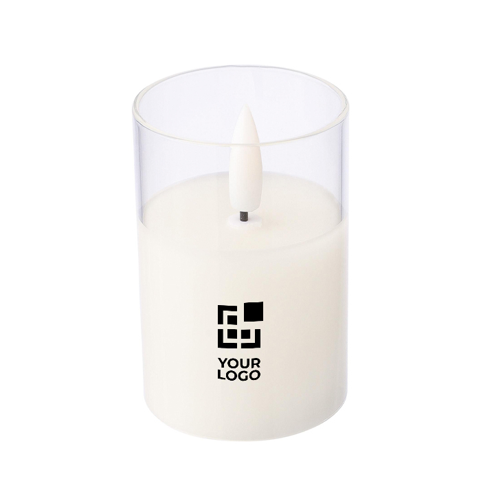 LED-Kerze mit realistischem Flammeneffekt. Ein warmes Geschenk, das deine Marke in Innenräumen hervorhebt und bis zu 100 Stunden Leuchtdauer bietet.