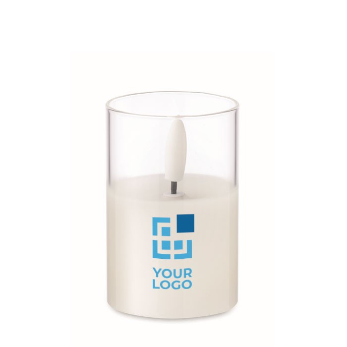 Kleine LED-Wachskerze mit imitieren Kerzenschein im Glashalter. Inkl. CR2032-Batterie.