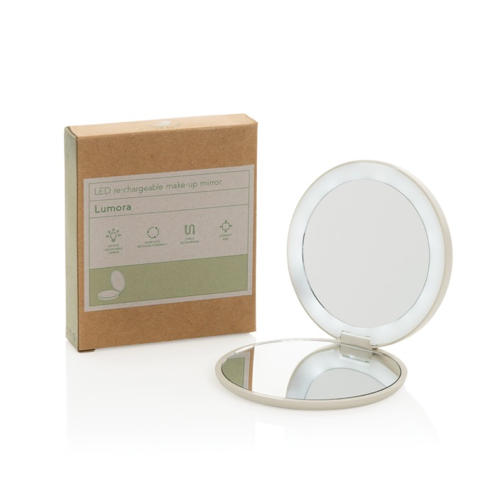 Taschenspiegel aus recyceltem Kunststoff mit Vergrößerung & LED-Licht