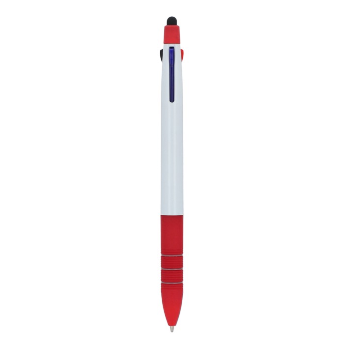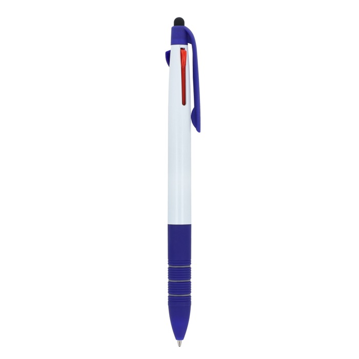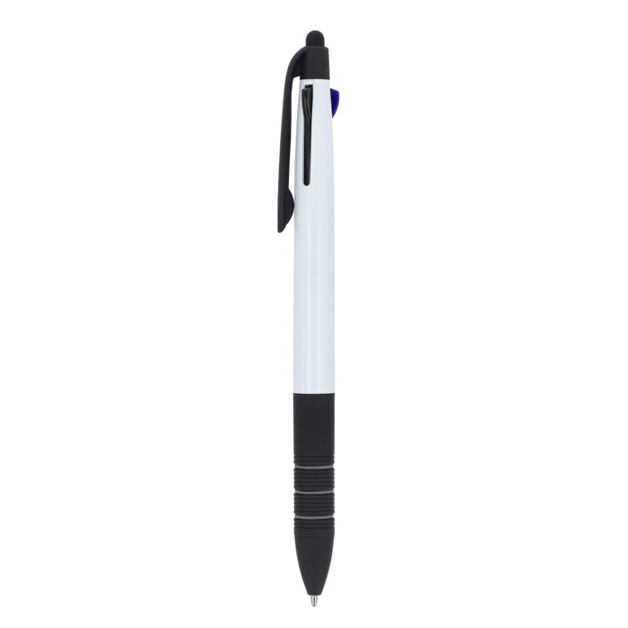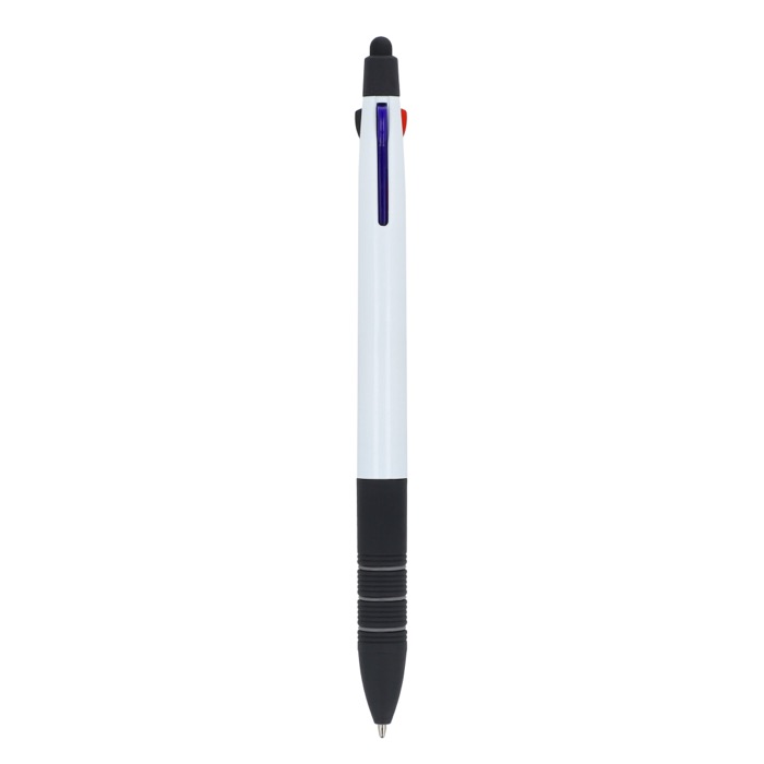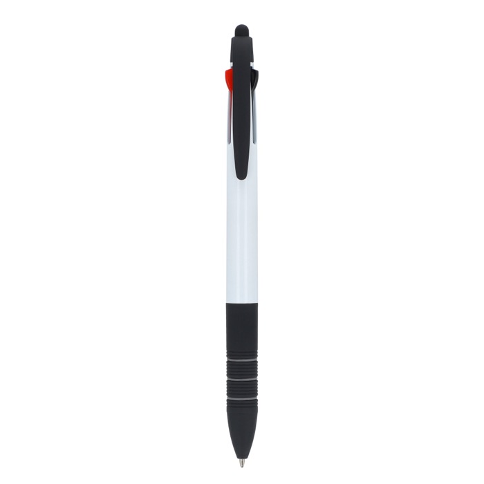 Kunststoff-Kugelschreiber mit drei Schreibfarben und Touchpen-Spitze, geeignet für den täglichen Einsatz im Büro. Er verfügt über eine weiche, ergonomische Griffzone für besseren Halt bei längerer Nutzung. Sie können zwischen schwarzer, blauer und roter Tinte wechseln und so Korrekturen, Prüfungen und Notizen effizient erledigen. Die Touch-Spitze ermöglicht die Bedienung von Bildschirmen, ohne diese zu verschmieren. Eine praktische Option für Maßnahmen zur Markensichtbarkeit auf Messen, bei Schulungen oder am Empfang.