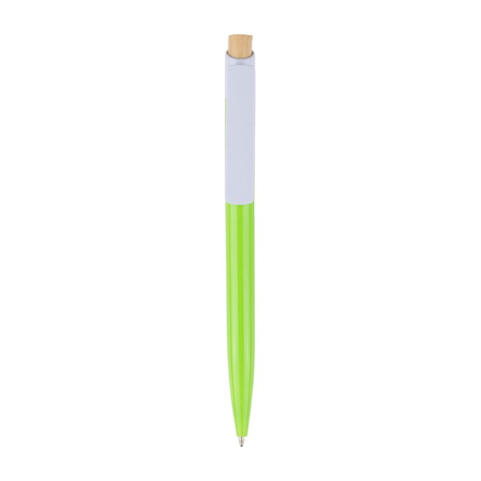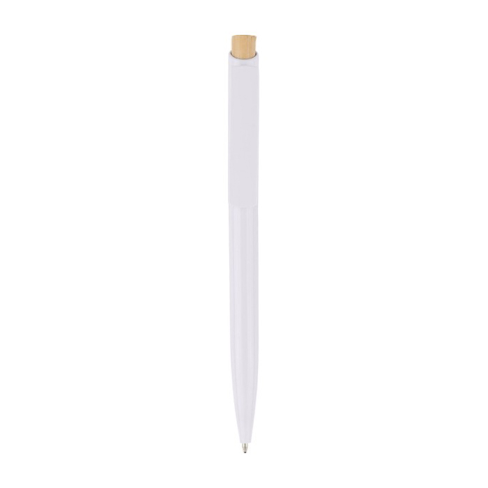 - Kugelschreiber mit Bambusdrücker und weißem Clip