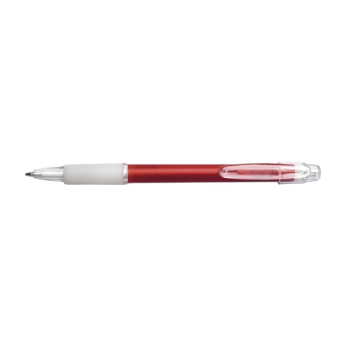 Kugelschreiber aus Kunststoff, transparent gefrostet, gummierte Griffzone, blaue Mine.
