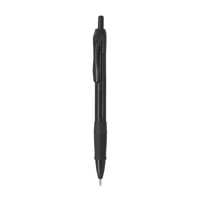 Kugelschreiber mit Druckmechanik aus Kunststoff, mit Griffzone in gummierter Ausführung für einen angenehmeren Halt im täglichen Gebrauch. Enthält schwarze Tinte, geeignet für Notizen im Büro, am Empfang oder bei Meetings mit Kunden. Das einziehbare Format schützt die Spitze, wenn er nicht verwendet wird, und erleichtert das Mitnehmen in der Tasche, in der Mappe oder im Stiftehalter. Praktische Option zum Personalisieren mit Ihrem Logo und zum Verteilen auf Messen, bei internen Schulungen oder bei Akquise-Aktionen.