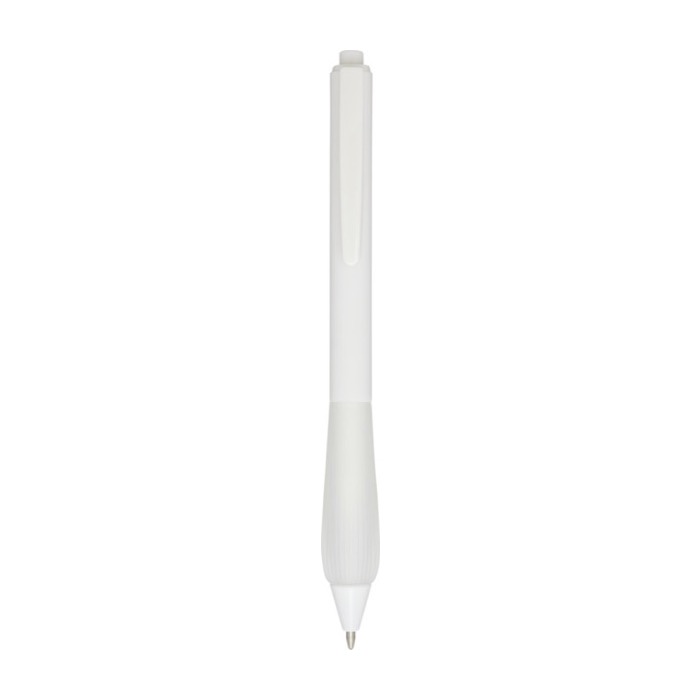 Kugelschreiber aus recyceltem Kunststoff mit gummiertem Schaft und Griff aus TPR. Tintenfarbe: Blau. Schreiblänge: 1000 Meter. Strichstärke: 1,0 mm.