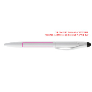 Kugelschreiber mit Touchpen und weißem Schaft für Logo, blaue Tinte