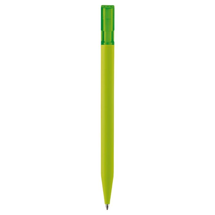 Beliebter Kugelschreiber mit Soft-Touch-Gehäuse und transparentem Clip. Dieser Stift wird in Deutschland hergestellt und verfügt über eine X20-Mine.