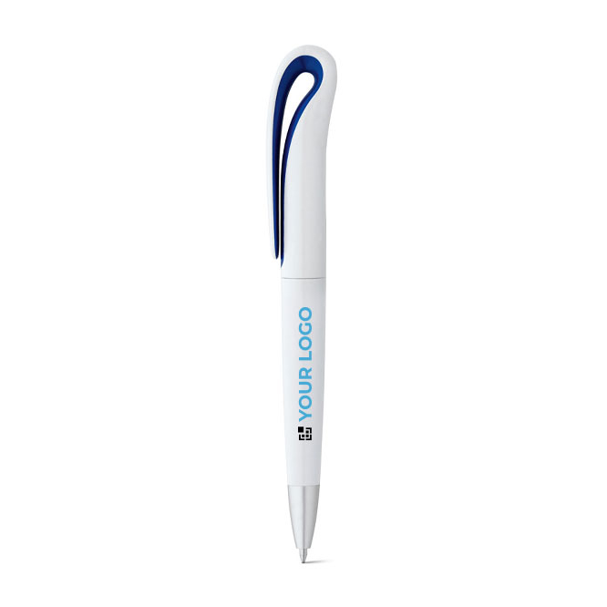 Günstiger Kuli mit schön gebogenem Clip aus ABS mit blauer Tinte