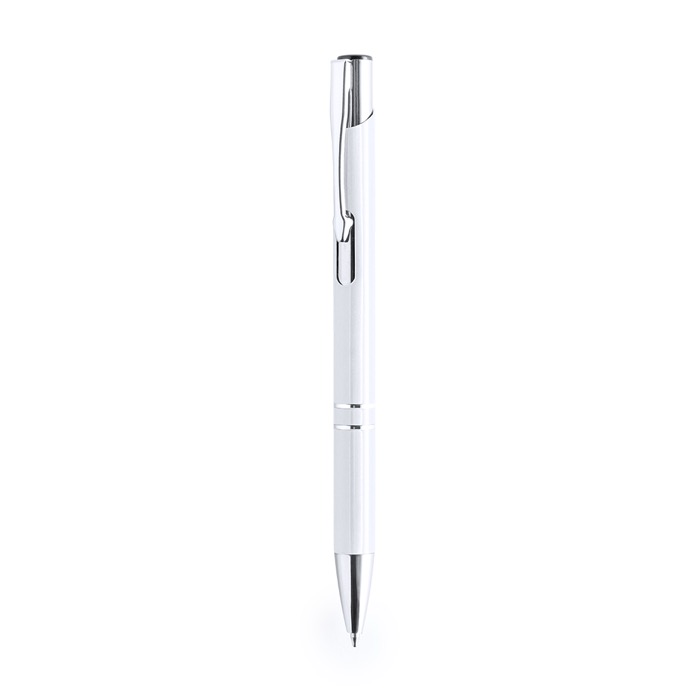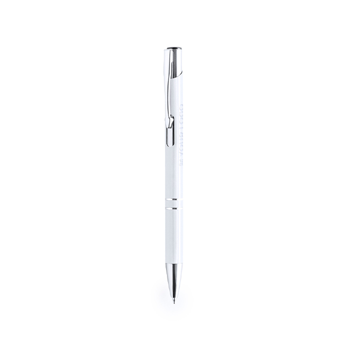 Kugelschreiber aus Aluminium mit Druckmechanik, ausgelegt für den täglichen Einsatz im Büro, am Empfang oder bei Schulungen. Er verfügt über silberfarbene Zubehörteile und passende Details an Clip, Druckknopf und Spitze, was für ein einheitliches und professionelles Erscheinungsbild sorgt. Die schwarze Tinte liefert klare Linien für Unterschriften, Notizen und interne Dokumente. Dank der Metalloberfläche eignet er sich gut für Branding-Maßnahmen mit Bedruckung. Empfehlenswert als Unternehmenspräsent für Messen, Veranstaltungen oder Akquisekampagnen.