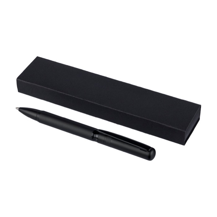 Kugelschreiber aus Messing mit Drehmechanik und farblich passendem Metallclip, für den täglichen Einsatz im Büro und im Kundenservice konzipiert. Er enthält blaue Dokumental-Tinte (deutsche Dokumententinte) mit gleichmäßigem Strich und einer Reichweite von ca. 1000 Metern Schreibleistung. Er wird einzeln verpackt geliefert, mit einer Einzelpräsentation in einer schwarzen Schiebebox für eine sorgfältige Übergabe von Hand oder für den internen Versand. Eine praktische Option für Markenaktionen auf Messen, bei Schulungen oder zur Begrüßung neuer Mitarbeitender.