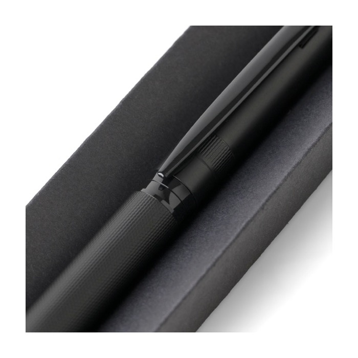 Kugelschreiber aus Aluminium mit Schaft aus Gummi und schwarzer Tinte