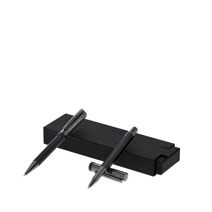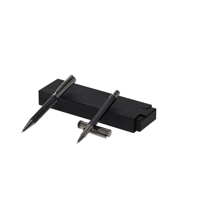Exklusives Kugelschreiber- und Rollerball-Set von höchster Qualität aus der Limited Edition Kollektion. Ein modernes, funktionales und wunderschönes Accessoire, das alle Erwartungen übertrifft. Ausgezeichnet durch sein elegantes, minimalistisches Design. Hergestellt aus starkem, langlebigem Edelstahl, in perfekter Kombination mit Aluminium. Kugelschreiber mit raffiniertem Drehöffnungssystem und Rollerball mit praktischem Verschluss. Hexagonales Griffdesign in matten Metallic-Farben und einem schlichten, anthrazitglänzenden Oberteil. Mit Metallclip, blauer Tinte und nachfüllbar (Rollerball mit Jumbo-Patrone). Aus der perfekten Kombination von Exklusivität und Design entsteht Limited Edition, eine spezielle Kollektion von Werbeideen in limitierter Auflage. Ein neues Konzept, inspiriert von der Fusion von Premium-Produkten mit den neuesten und innovativsten Trends und mit einer begrenzten Auswahl, die ein Geschenk in eine einzigartige und unvergessliche Erfahrung verwandelt. Exklusive Limited Edition Präsentationsbox, mit einem durch gewerbliche Schutzrechte geschützten Design. Inklusive Karte mit Beschreibung der Limited Edition auf recyceltem Karton.