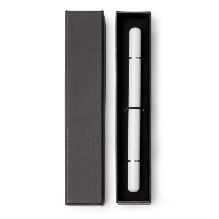 Edler Touchpen-Kugelschreiber in Schwarz oder Weiß in Box bedrucken