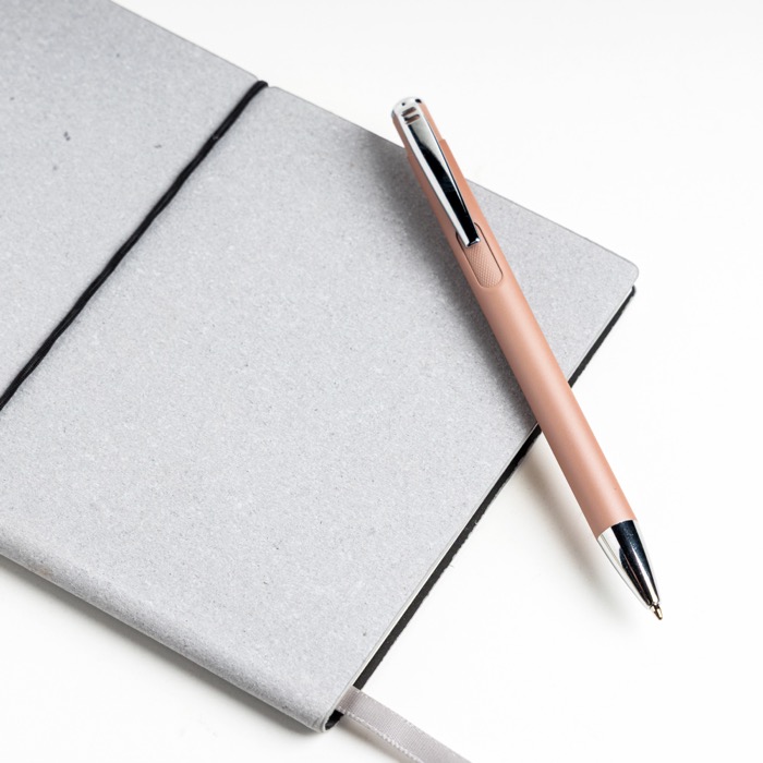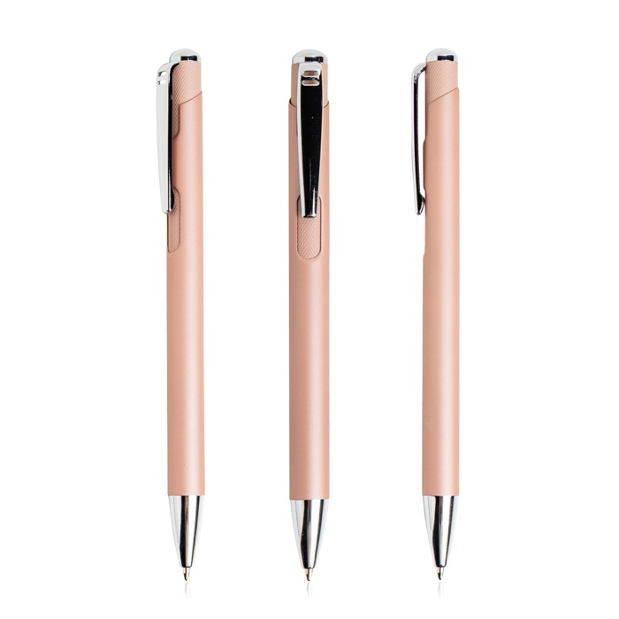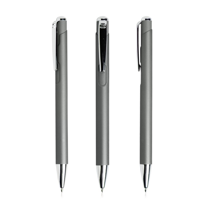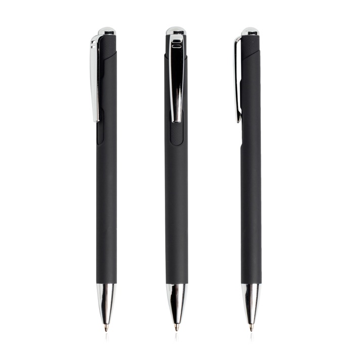 Metallkugelschreiber mit gummierter Oberfläche und blauer Tinte