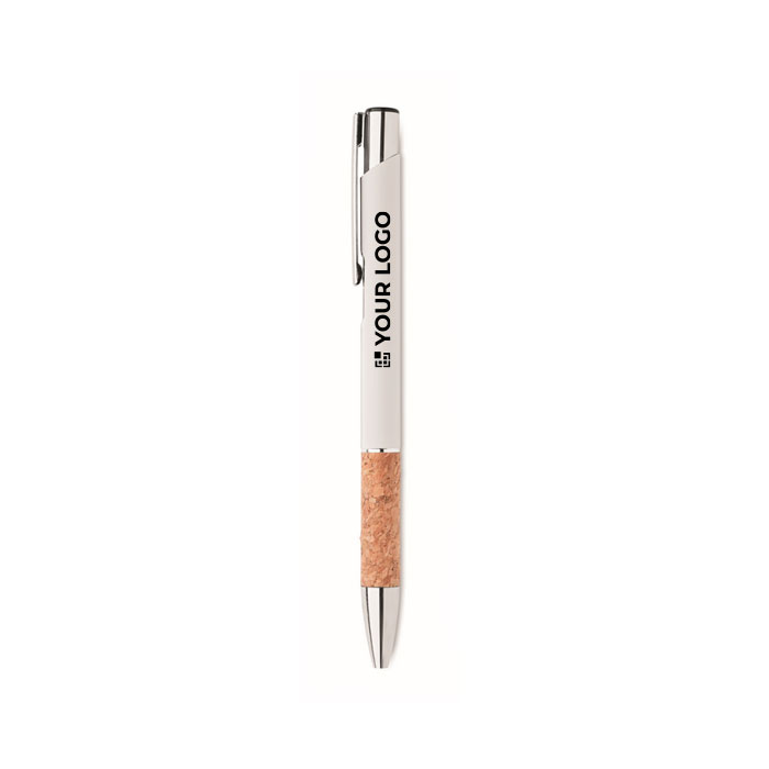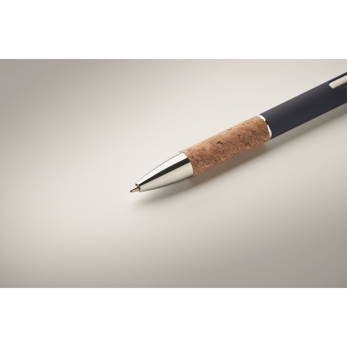 Druckkugelschreiber aus Aluminium mit Korkdetails und blauer Tinte