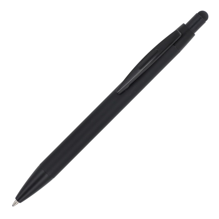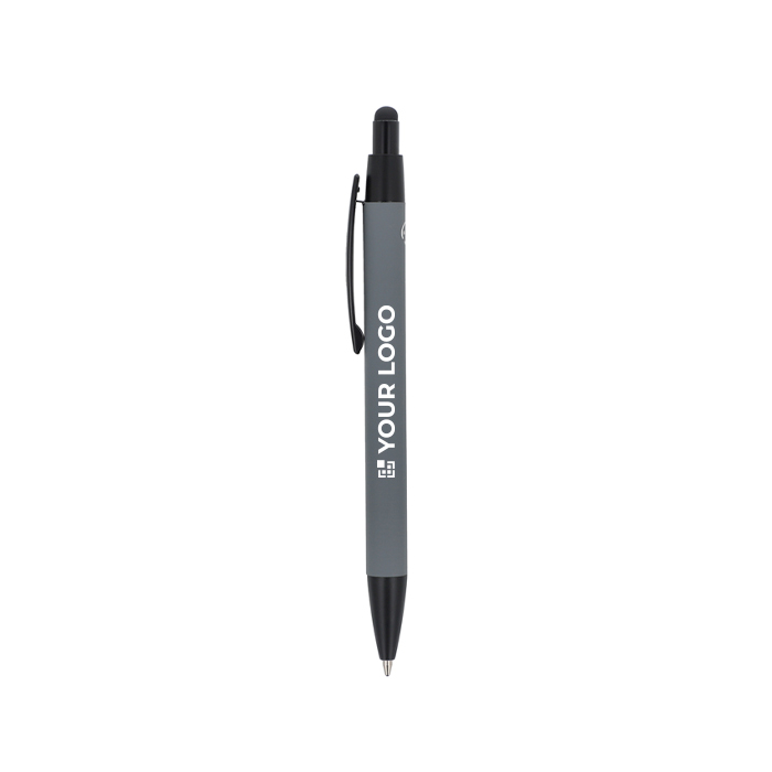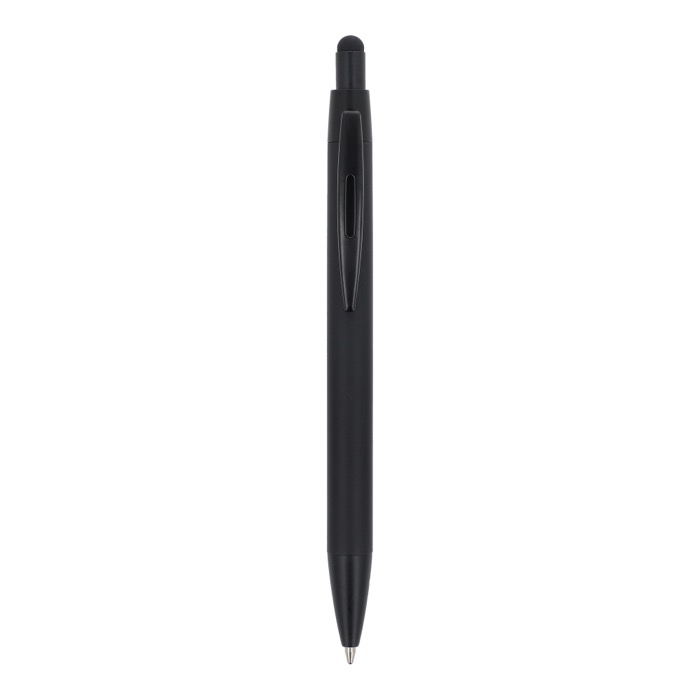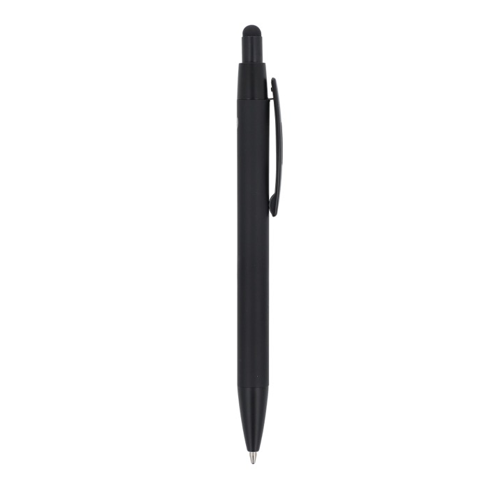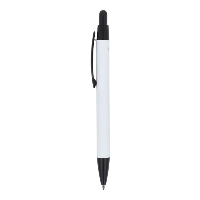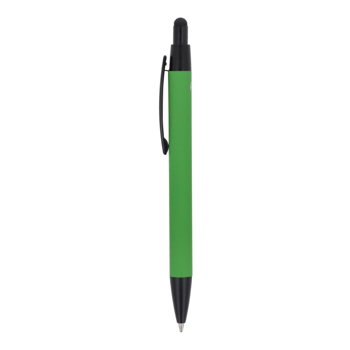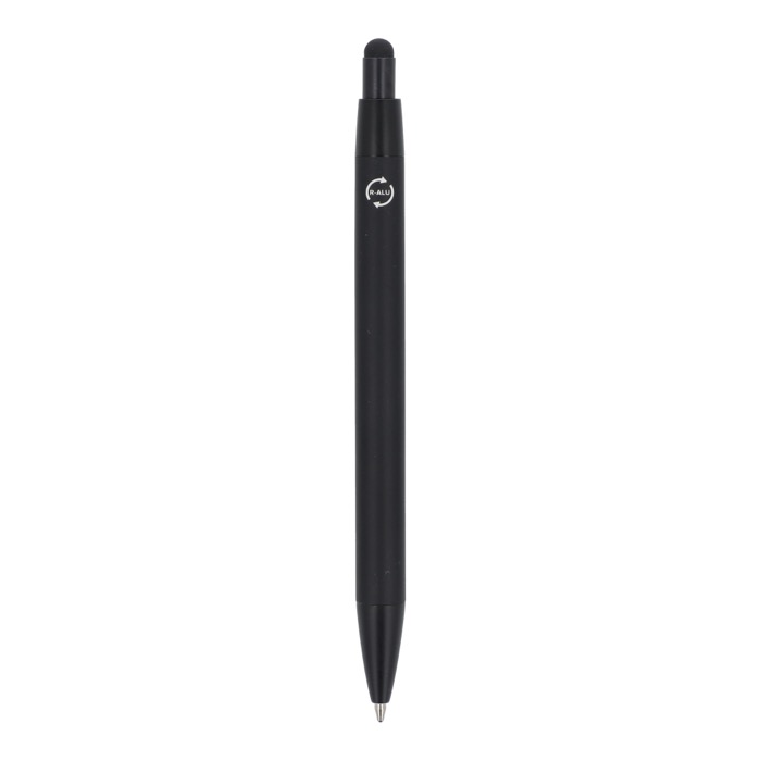 Kugelschreiber aus recyceltem Aluminium mit Soft-Touch-Oberfläche, geeignet für den täglichen Einsatz im Büro und bei Geschäftsterminen. Er verfügt über einen Metallclip zum Befestigen an Tasche oder Notizbuch sowie über eine Stylus-Spitze zur Bedienung von Bildschirmen, ohne Spuren zu hinterlassen. Schreibt mit blauer Tinte und ist mit einer Jumbo-Mine ausgestattet, um die Lebensdauer zu verlängern und den Austausch zu reduzieren. Eine praktische Option zur Personalisierung mit Ihrem Logo für Akquiseaktionen, Messen und Unternehmensmaterial.