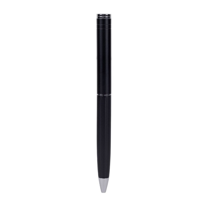 Eleganter Kugelschreiber aus Metall mit Drehmechanismus und blauer Tinte.