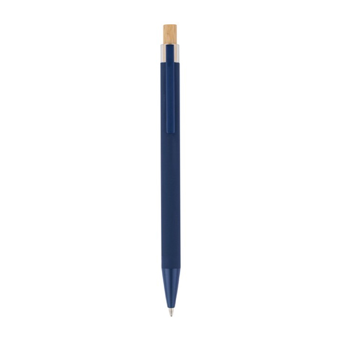 Kugelschreiber aus recyceltem Aluminium mit Bambusdrücker, blaue Tinte