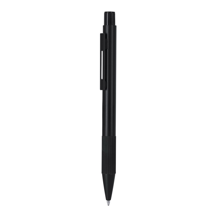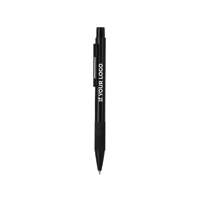 Kugelschreiber mit Gehäuse aus recyceltem Aluminium und Griffzone mit strukturierter, gummierter Oberfläche für einen festeren Halt. Er verfügt über einen Druckmechanismus für eine unkomplizierte Nutzung im Alltag sowie über eine Jumbo-Mine, die für längeres Schreiben ausgelegt ist. Die blaue Tinte liefert einen Standardstrich für Notizen, Formulare und Büroarbeiten. Enthält ein Kennzeichen für recyceltes Aluminium, das hilft, das Material des Artikels zu erkennen. Empfohlen für Markenaktionen auf Messen, bei Schulungen oder zur Begrüssung von Mitarbeitern.