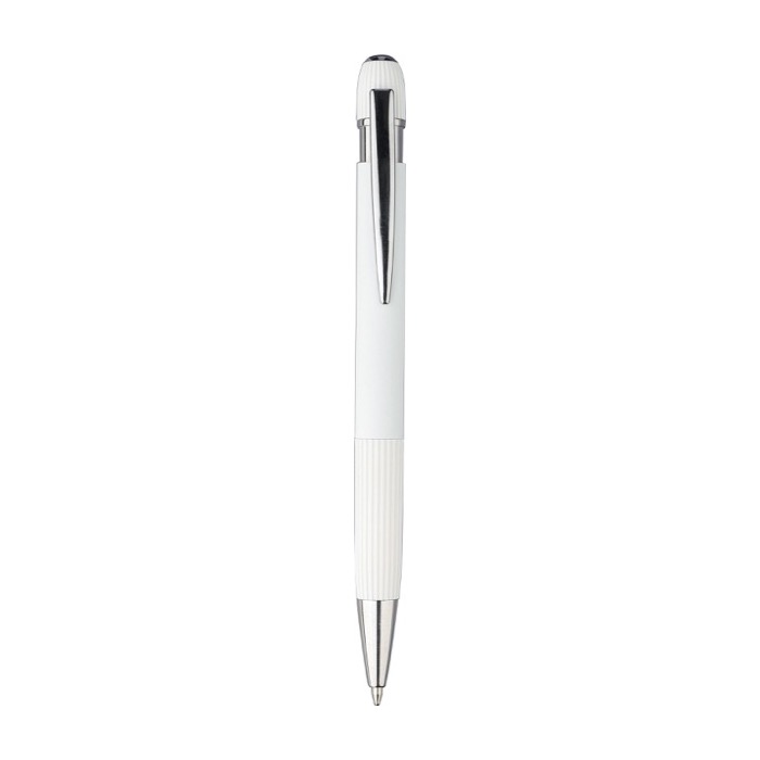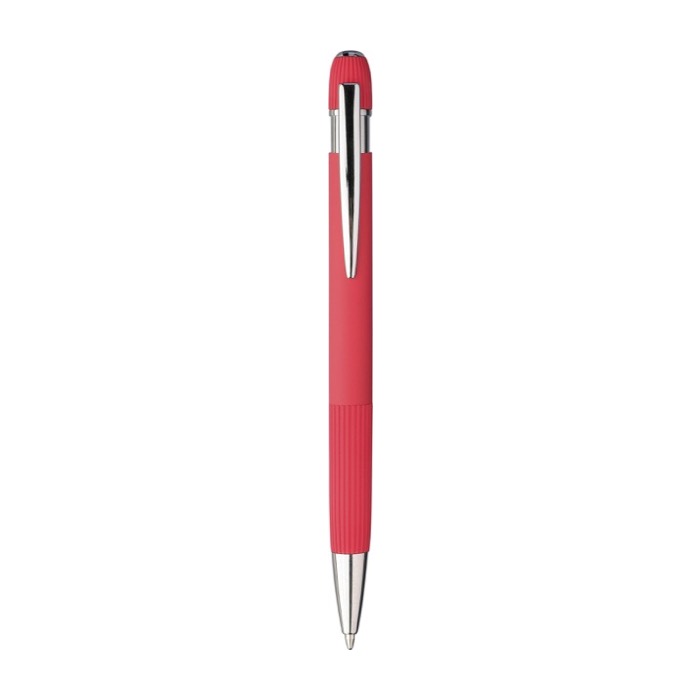 Metallkugelschreiber mit gummierter Oberfläche und blauer Tinte