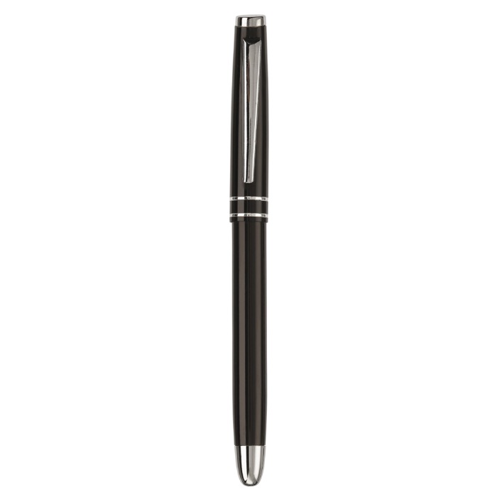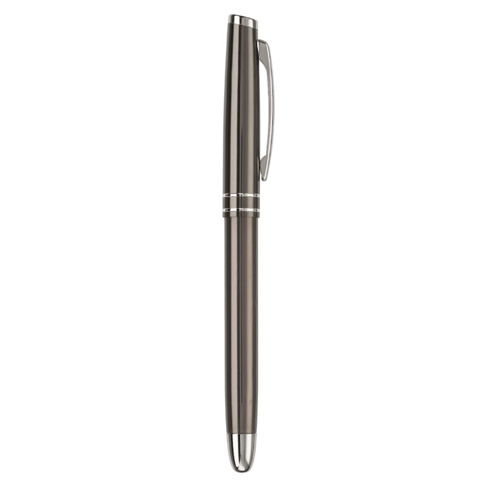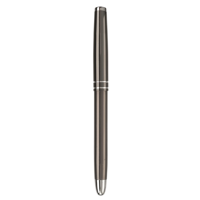 Aluminium Rollerball mit eleganter Kappe und zwei Ringen. Blauschreibend.