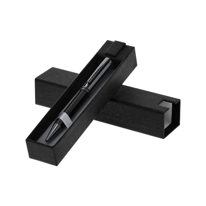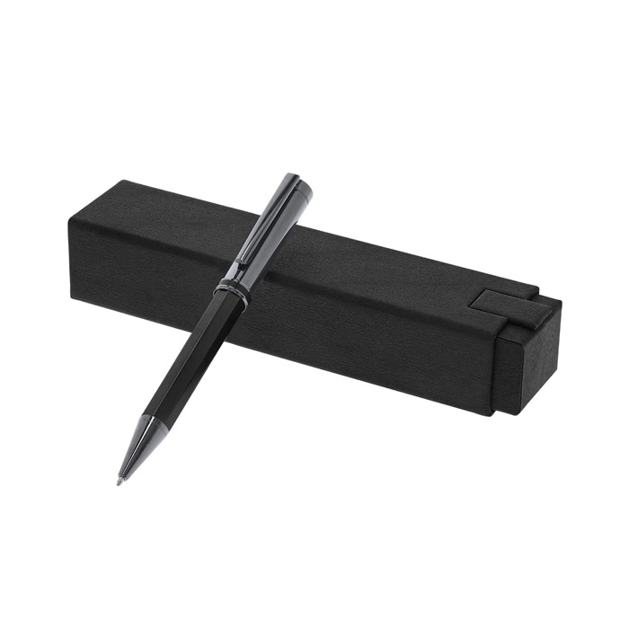 Hochwertiger Metallkugelschreiber aus Edelstahl und Aluminium, ausgelegt für den anspruchsvollen Büroalltag. Mit Drehmechanismus zum schnellen und komfortablen Schreiben, blauer Tinte und austauschbarer Mine. Der sechskantige Griff verbessert die Handhabung, und das zylindrische Oberteil mit Clip erleichtert das Mitnehmen im Notizbuch oder in der Tasche. Matte Metalloberflächen mit glänzendem anthrazitfarbenem Detail am oberen Ende sorgen für einen gepflegten Auftritt. Ideal als Unternehmensgeschenk bei Veranstaltungen, im Vertrieb oder zur Begrüssung neuer Mitarbeiter.