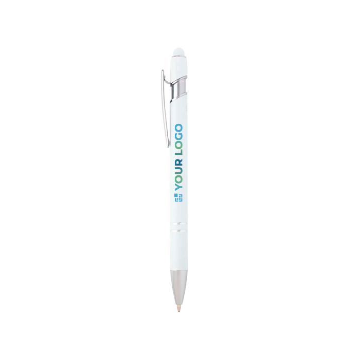 Dieser Kuli bietet Stil und Nachhaltigkeit. Er ist aus recyceltem Aluminium, mit schwarzer Tinte und silbernem Finish sowie Touchstift für Bildschirme.