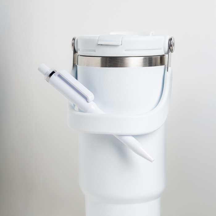 Kugelschreiber aus recyceltem ABS mit modernem Design, inspiriert von der Drinkware-Kollektion. Er verfügt über einen Druckmechanismus und flüssiges Schreiben mit blauer Tinte. In verschiedenen Farben erhältlich – eine nachhaltige und stilvolle Wahl für den Alltag.