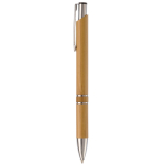Bambuskugelschreiber mit Metallakzenten an Clip und Spitze. Bietet klare, elegante schwarze Schrift. Empfohlen als Werbegeschenk für Firmen.