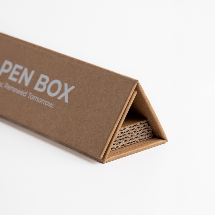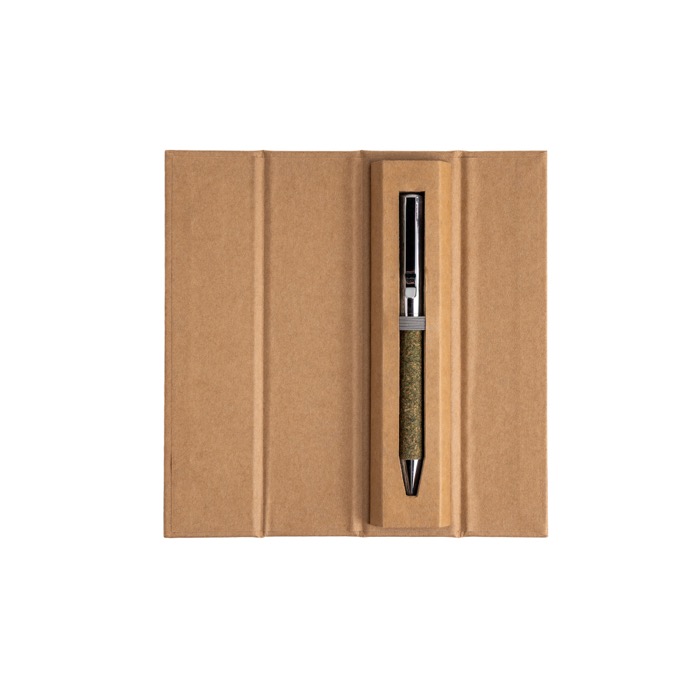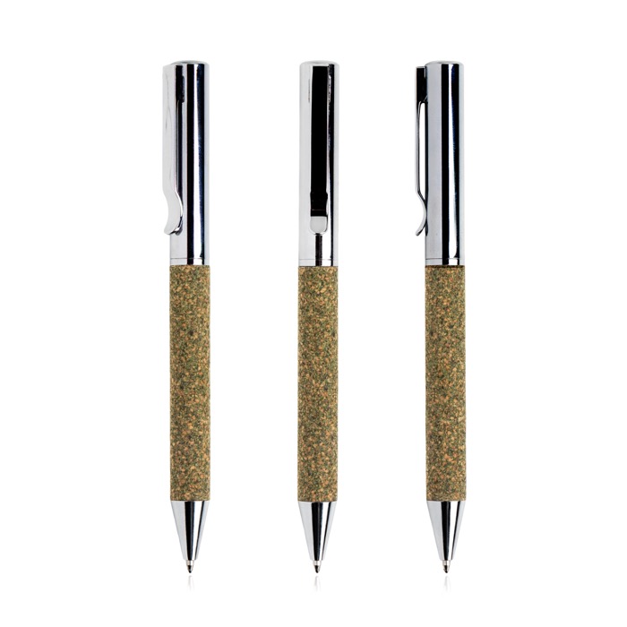 Umweltfreundlicher Kugelschreiber aus Edelstahl mit modernem und funktionalem Design. Die Metallspitze und der obere Teil sorgen für Langlebigkeit und ein elegantes Finish. Der Schaft besteht aus Grüntee-Resten und unterstreicht das Umweltbewusstsein des Produkts. Der schmale Clip mit gebogener Spitze sorgt für sicheren Halt an Notizbüchern oder Taschen. Mit Drehmechanismus und schwarzer Tinte bietet er ein sanftes, praktisches Schreiberlebnis für den Alltag. Eine nachhaltige Wahl mit modernem Touch. Präsentiert in einer dreieckigen Kartonbox.