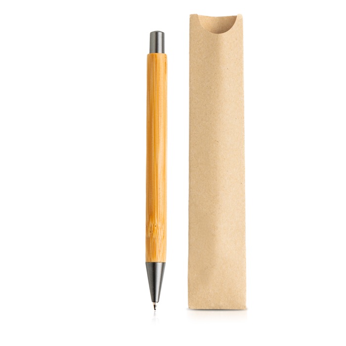 Umweltfreundlicher Schreibstift aus Bambusmaterial. Bambus gilt als äußerst nachhaltig. Es wächst schnell und es werden keine Chemikalien verwendet. Es kann jedes Jahr neu angebaut werden. Bambus ist stabil, hat ein attraktives Aussehen und ist am Ende seiner Nutzungsdauer biologisch abbaubar. Die Anbauer erzielen einfach eine reiche Ernte, ohne komplexe Pestizide und Düngemittel zu verwenden.