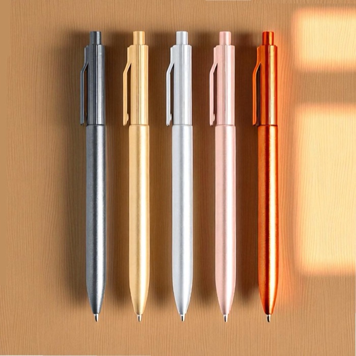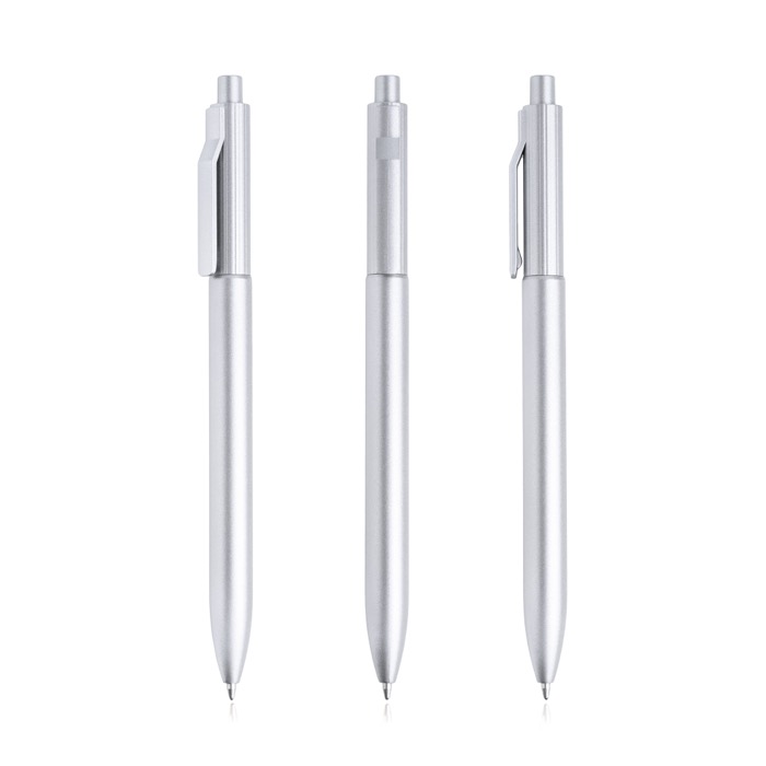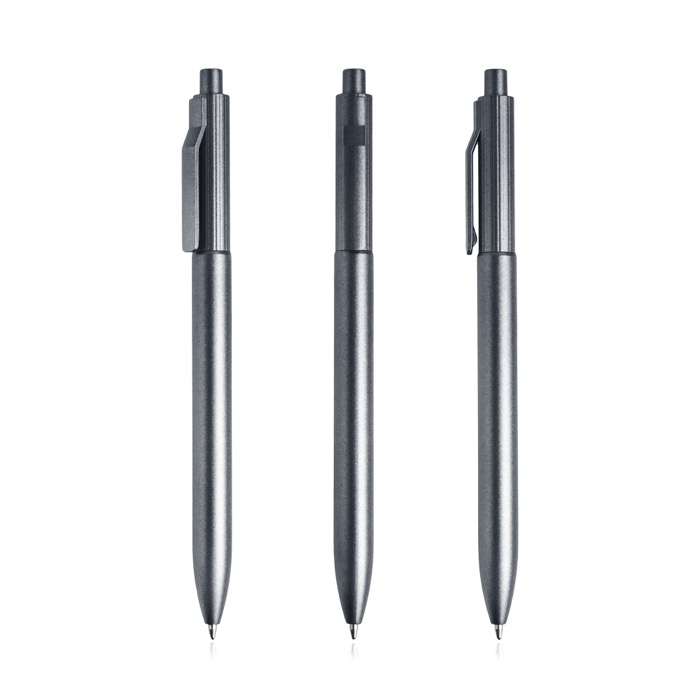 Kugelschreiber aus recyceltem ABS mit funktionalem Design, das Ihr Engagement für Nachhaltigkeit widerspiegelt. Der obere Teil hat ein feines Rillenmuster über etwa ein Drittel der Länge und integriert den Clip elegant. Mit Druckmechanismus und schwarzer Tinte ist er eine praktische und zuverlässige Wahl für den Alltag. Die metallischen Farben verleihen ihm einen Hauch von Raffinesse – ideal für professionelle Umgebungen oder stilvolle Werbegeschenke.