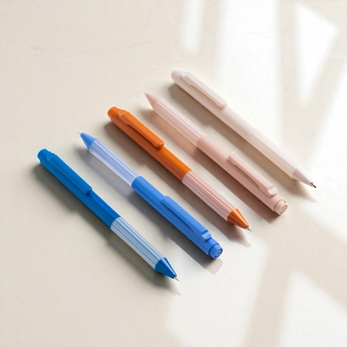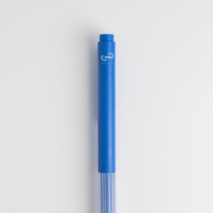 Kugelschreiber aus recyceltem ABS mit farbigen Komponenten in Vollton. Die transluzente Silikongriffzone sorgt für zusätzlichen Komfort. Mit schwarzer Geltinte und leisem Druckmechanismus – ideal für Arbeit oder Studium.