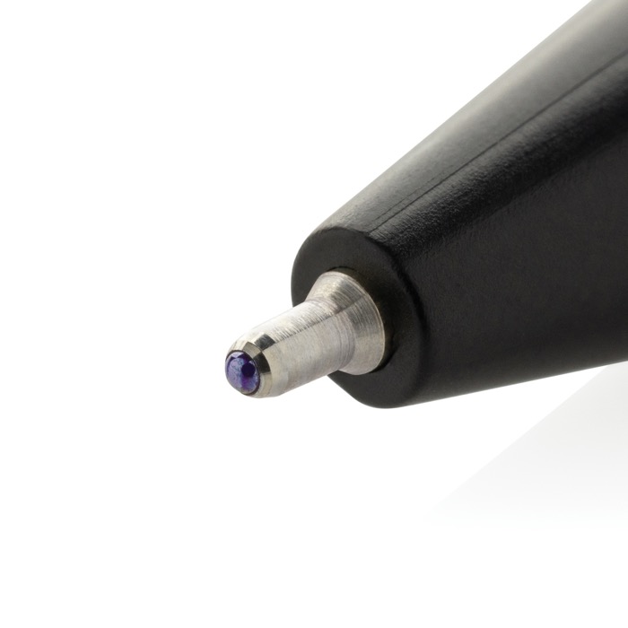 Der GRS-zertifizierte R-ABS-Kugelschreiber besteht zu 55 % aus recyceltem R-ABS-Kunststoff. Er enthält ultragleitfähige Tinte mit niedriger Viskosität, die bei jedem Gebrauch ein sanftes und kontinuierliches Schreiben ermöglicht. Die Tinte ist blau und hat eine Schreiblänge von 800 Metern.