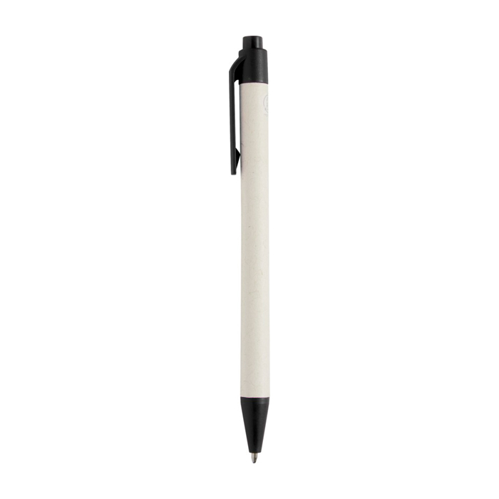 Kugelschreiber mit Druckmechanismus und Körper aus recycelten Milchkartons (bis zu 70 %). Kappe, Clip und Spitze aus PLA-Kunststoff.
