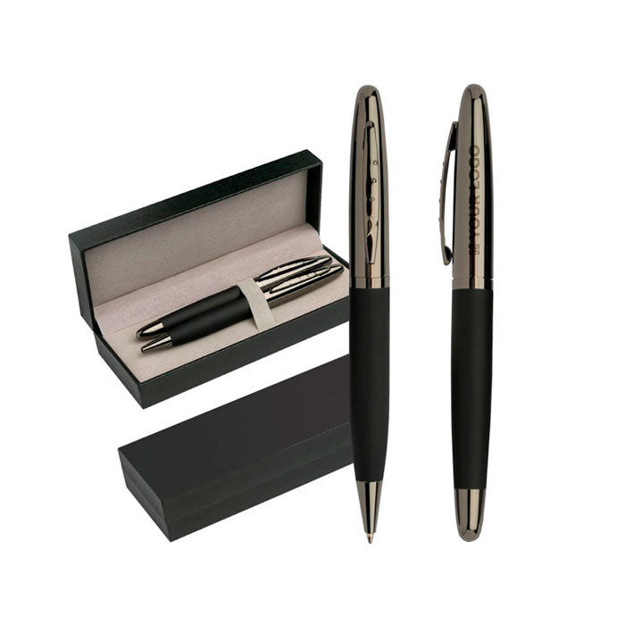 Begeistern Sie Ihre Kunden mit unserem Soft-Touch-Kuli- und Tintenroller-Set. Ein glamouröser Sreuartikel, das dem Schreibtisch einen Hauch von Luxus verleiht.