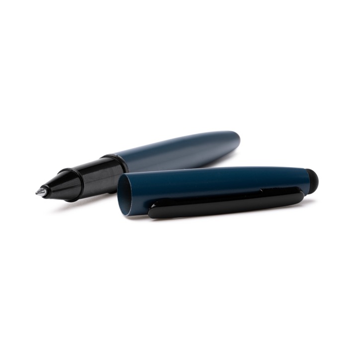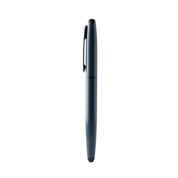 Rollerball aus recyceltem Aluminium mit Touchpen, blaue Tinte