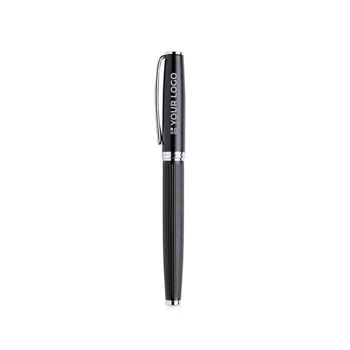 Tintenroller. Elegant und anspruchsvoll, mit einem elegant strukturierten Körper. Mit einer Kappe und schwarzer Tinte.