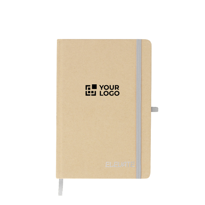 A5-Notizbuch mit festen Einbänden aus recyceltem Karton, entwickelt für den täglichen Einsatz im Büro oder bei Veranstaltungen. Es enthält 80 linierte Blätter in Naturfarbe, die das Notieren und das Organisieren von Besprechungen erleichtern. Das Gummiband hilft, es in Rucksäcken oder Aktentaschen geschlossen zu halten, während die Stiftschlaufe und das farbige Lesezeichen den schnellen Zugriff auf Informationen verbessern. Es ermöglicht eine Lasergravur für eine saubere und langlebige Personalisierung bei Maßnahmen für Unternehmen.