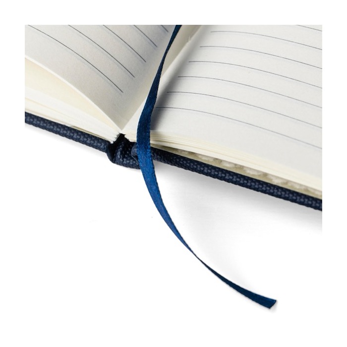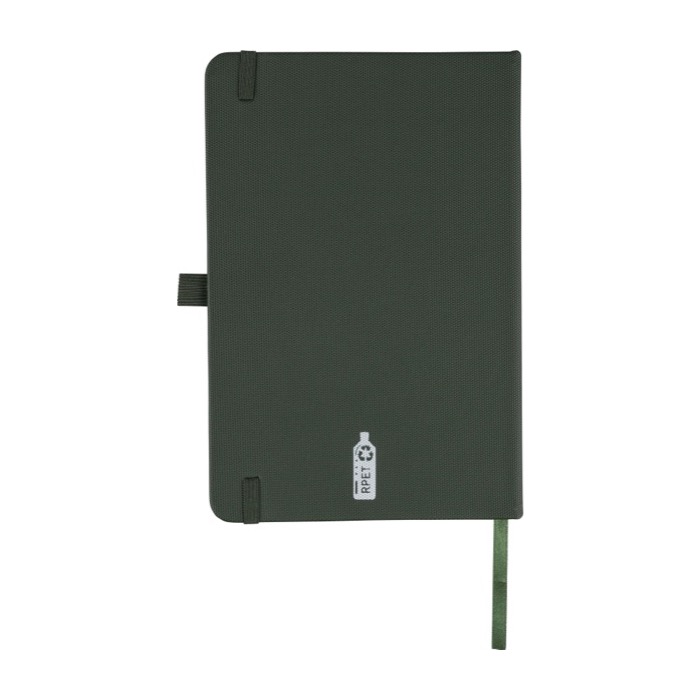 Notizbuch aus recyceltem Kunststoff-Polyester mit Kunstlederbeschichtung im A5-Format für Arbeitsnotizen und Besprechungen. Es enthält 80 linierte Blätter mit 70 g/m², ausgelegt für ein flüssiges Schreiben im Alltag. Integriert sind ein Lesezeichenband, ein Gummibandverschluss und eine Stiftschlaufe, damit Sie alles griffbereit haben. Der halbfeste Einband schützt besser in Rucksäcken und Aktentaschen, und das Recycling-Logo ist auf der Rückseite geprägt. Nützlich für Kongresse, Onboarding und Markenaktionen mit Logo.