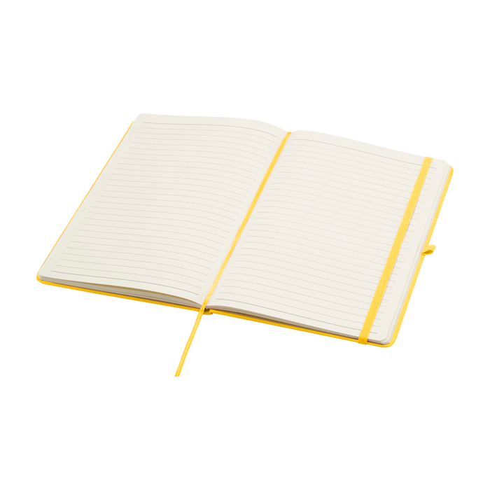 Das Spectrum Plus A5 Hardcover Notizbuch mit abgerundeten Ecken ist nicht nur ein unentbehrlicher Begleiter im Büro, sondern auch ein hervorragender Weg, um für Ihre Marke zu werben. Das Notizbuch aus Karton mit weichem Einband und 80 linierten, cremefarbenen Seiten (70 g/m2) eignet sich ideal für schnelle Ideen oder längere Notizen. Das Notizbuch ist mit Stiftschlaufe, elastischem Verschluss, Lesebändchen und erweiterbarer Tasche ausgestattet.