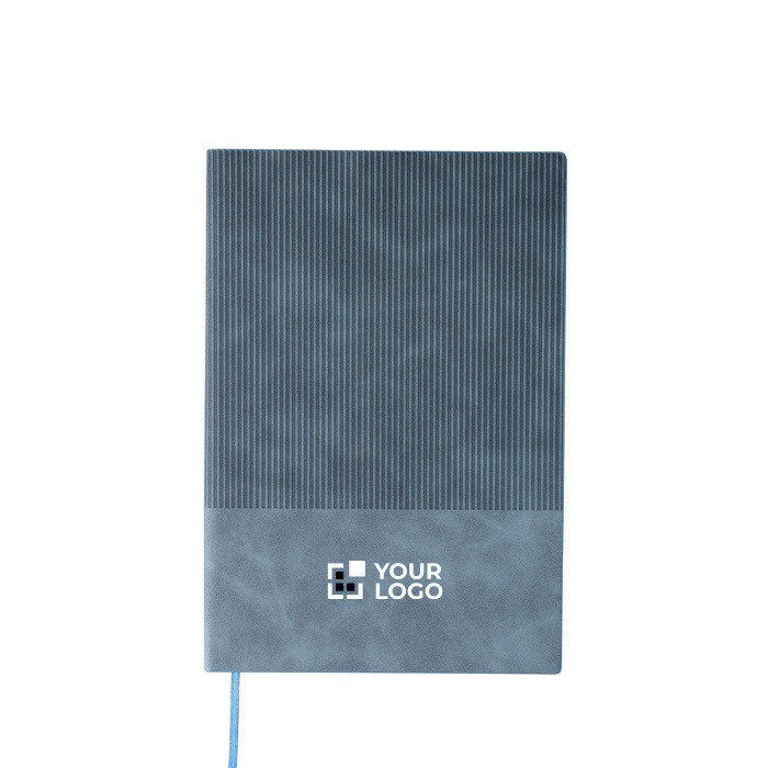 Recyceltes Notizbuch mit Hardcover im Samteffekt, linierten Seiten und Lesezeichen. Ein nachhaltiges Detail, das deine Marke im Geschäftsalltag stärkt.