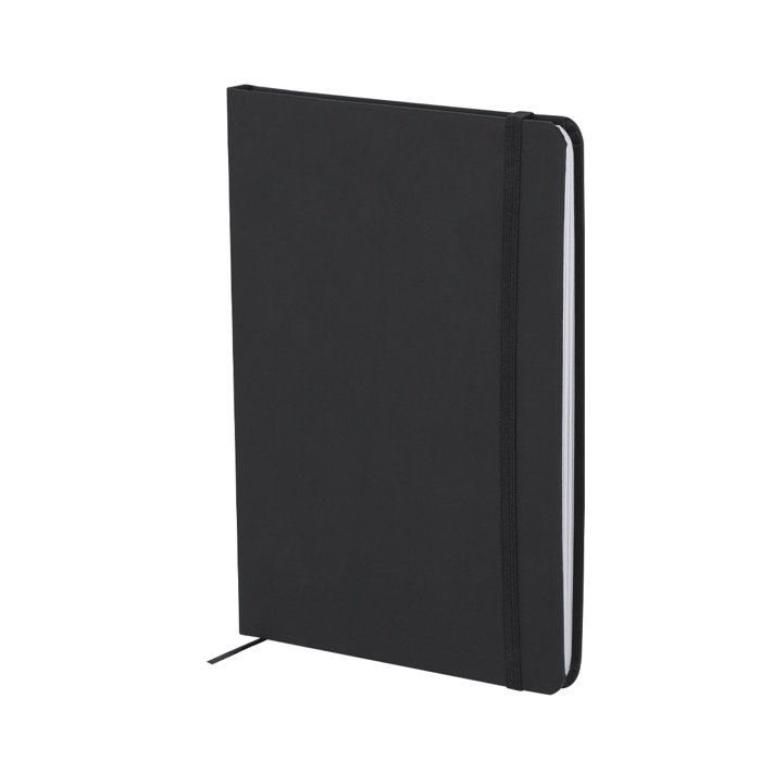 - A5-Notizbuch mit festem Einband und Gummibandverschluss