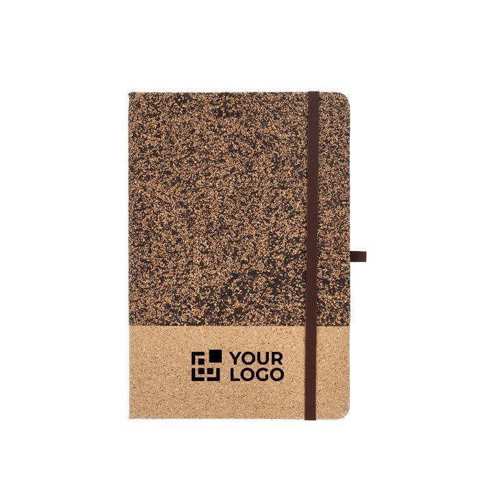 Notizbuch mit Umschlag aus Kork und Kaffeesatz, Elastikband und Stiftschlaufe. Ein nachhaltiges Detail mit modernem Look für berufliche Notizen.