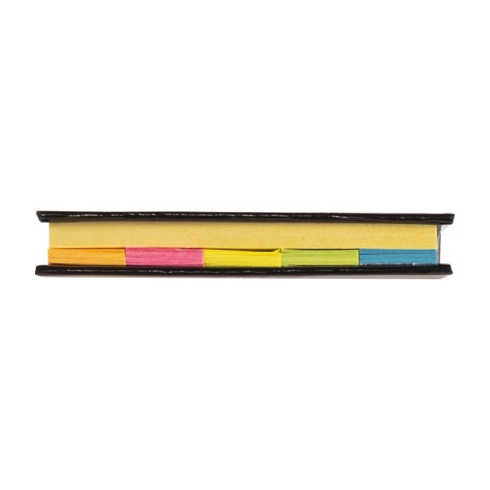 Hardcover-Memohalter mit 50 Haftnotizen und 5 farbigen Streifen (je 25). Erleichtert visuelles Management und steigert Effizienz am Arbeitsplatz.