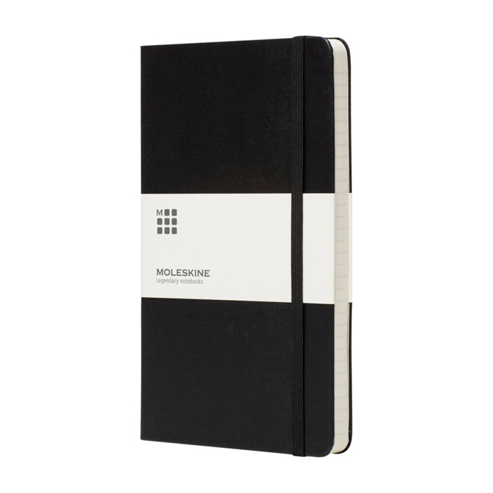 - Taschen-Notizbuch mit hartem Einband und Gummiverschluss von Moleskine.