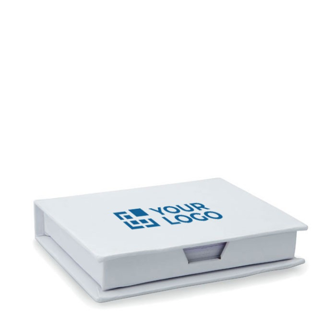 Bedruckte Notizblöcke sind eines der beliebtesten Bürogeschenke. Dieses Modell enthält eine Box mit Haftnotizen und eine große Werbedruckfläche.