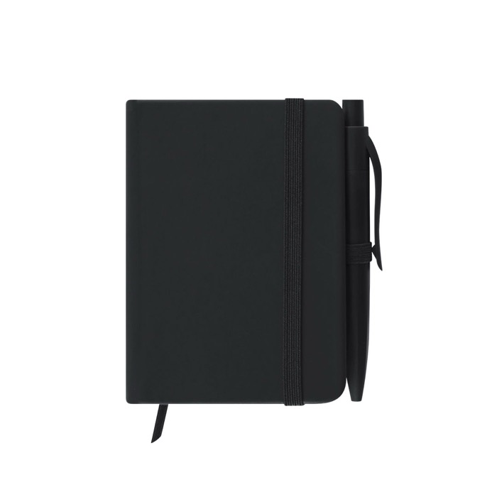 Notizblock im A7-Format mit festen Einbänden aus Kunstleder und einer Ausführung für den täglichen Einsatz im Büro oder unterwegs. Enthält 80 linierte Blätter für schnelle Notizen sowie ein Haltegummi, der hilft, ihn im Rucksack oder in der Aktentasche geschlossen zu halten. Mit Stoff-Lesezeichen, um Inhalte schnell zu finden, und passendem Kugelschreiber, damit Sie ihn stets griffbereit haben. Nützlich für Schulungen, Messen, Onboarding und interne Besprechungen.