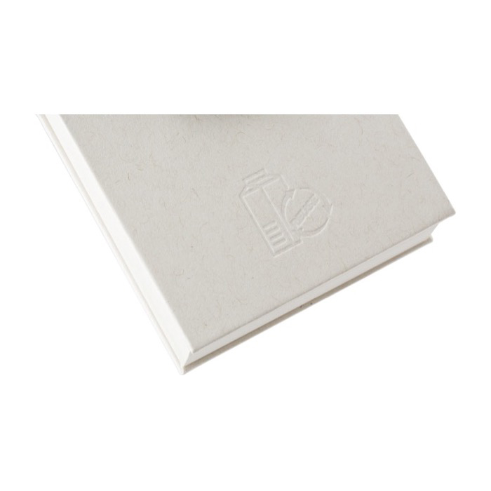 Notizblock aus recyceltem Milchkarton mit 200 unbedruckten Blättern. Hergestellt aus 70% recyceltem Milchkarton und 30% recyceltem Papier. Einschließlich des Milchkarton-Stempels auf der Unterseite des Umschlags.