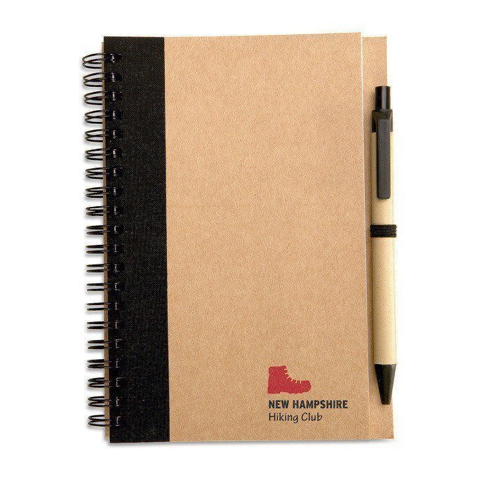 Notizbuch aus Recyclingkarton und passendem Kuli als Werbegeschenk, A5