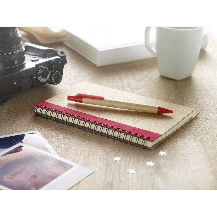 Bedruckbares Notizbuch mit Cover aus recyceltem Karton mit Kuli